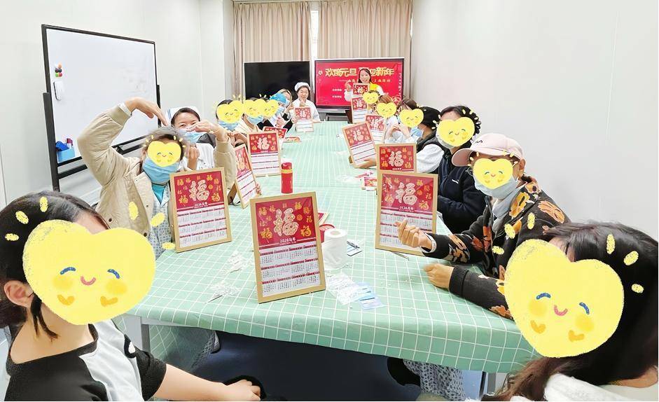 活动的亮点环节——福字手工日历制作,深受参与者喜爱。在医务社工的引导下,大家手持镊子,从均匀涂抹胶水,到精准粘贴珍珠,再到调整构图细节,过程中,参与者积极互动,主动分享制作心得,彼此鼓励支持。有人分享“珍珠排列更显灵动”的小诀窍,有人协助同伴固定贴纸,现场尽是互助友爱的温馨景象。不一会儿,一幅幅精致的福字日历相继映入眼帘——莹润的珍珠镶嵌在寓意吉祥的福字之上,传统文化的底蕴与珍珠的灵动光泽巧妙交融。每件作品不仅承载着大家对新年的美好憧憬,更寄托着对健康的真挚祈愿。